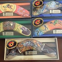Framed Boomerangs and Framed Aboriginal Canvas Art are available in various sizes. Presentation boxes included.